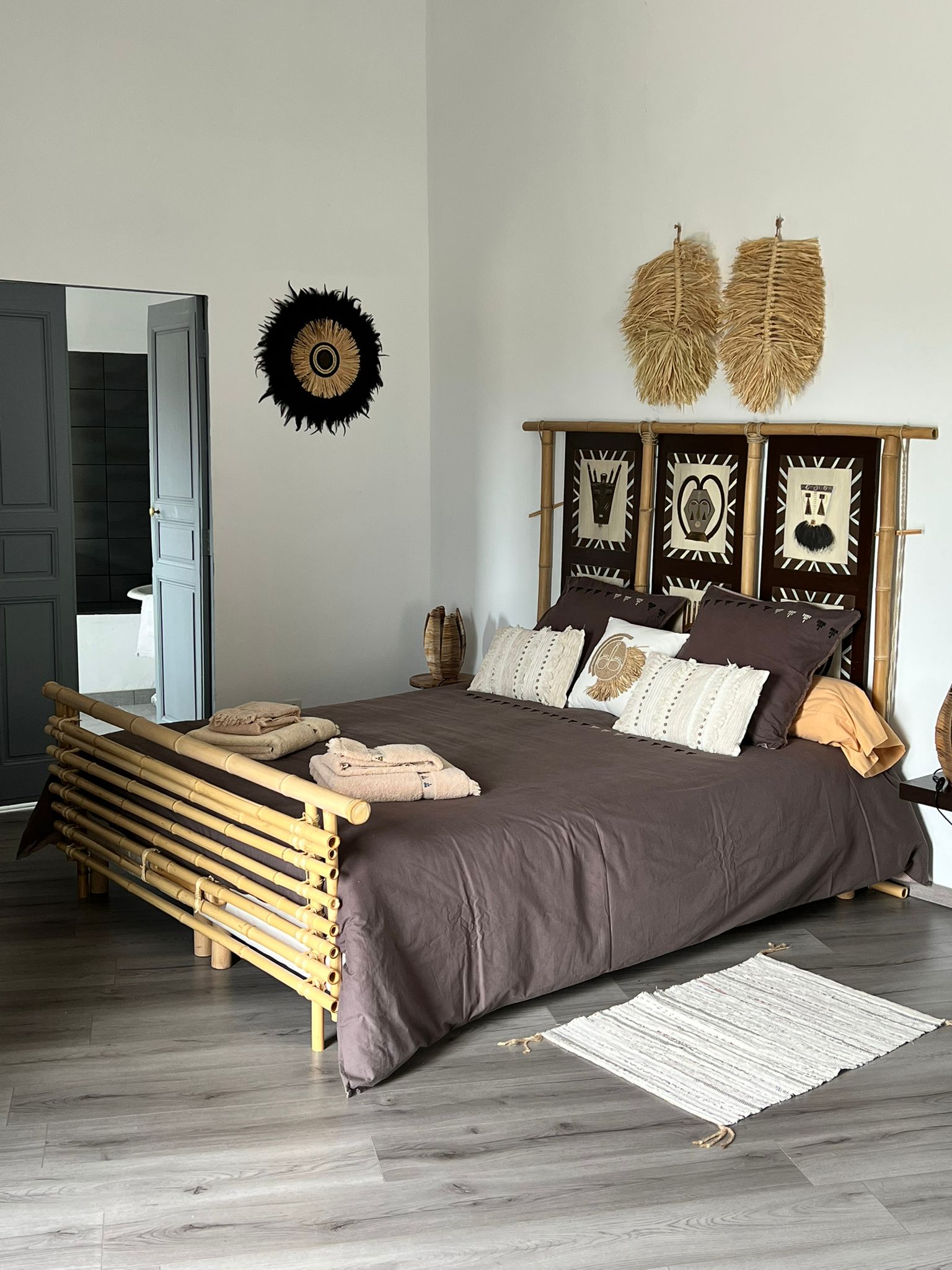Cette suite parentale aux allures exotiques possède sa propre terrasse privative avec magnifique vue sur les Cévennes qui surplombe le jardin et la piscine.