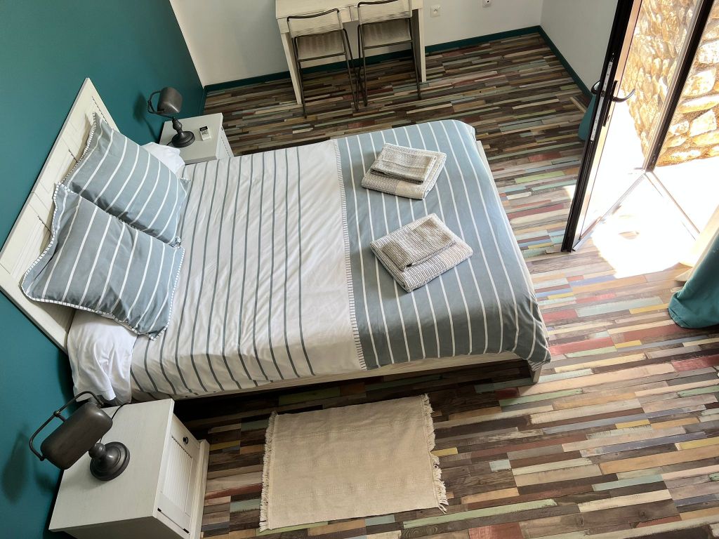 peut être louée pour 2 personnes ou 2 couples avec la chambre bleue
