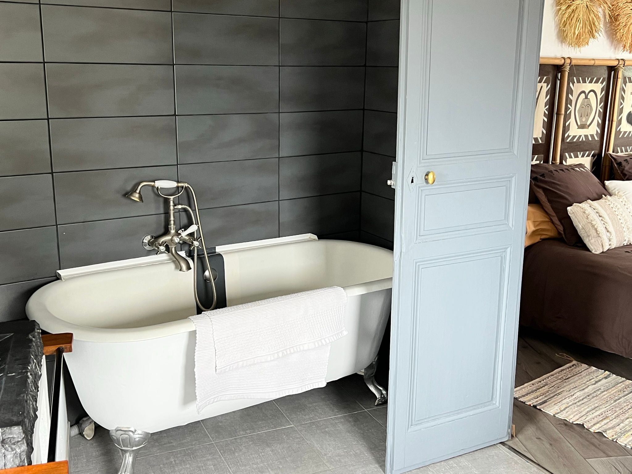 - sdb et WC privatifs avec baignoire (linge de toilette et produits douche fournis)