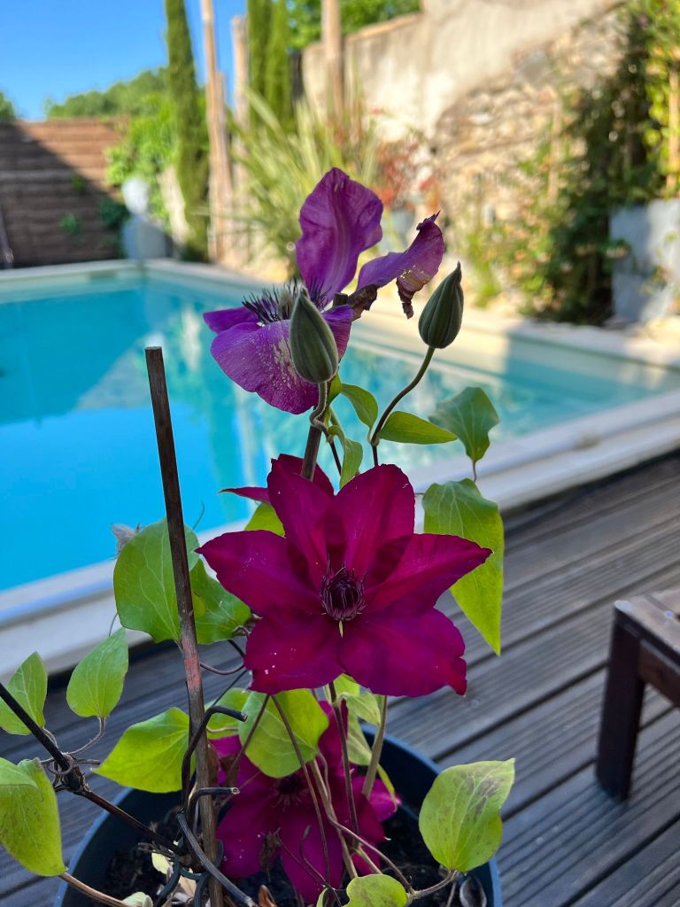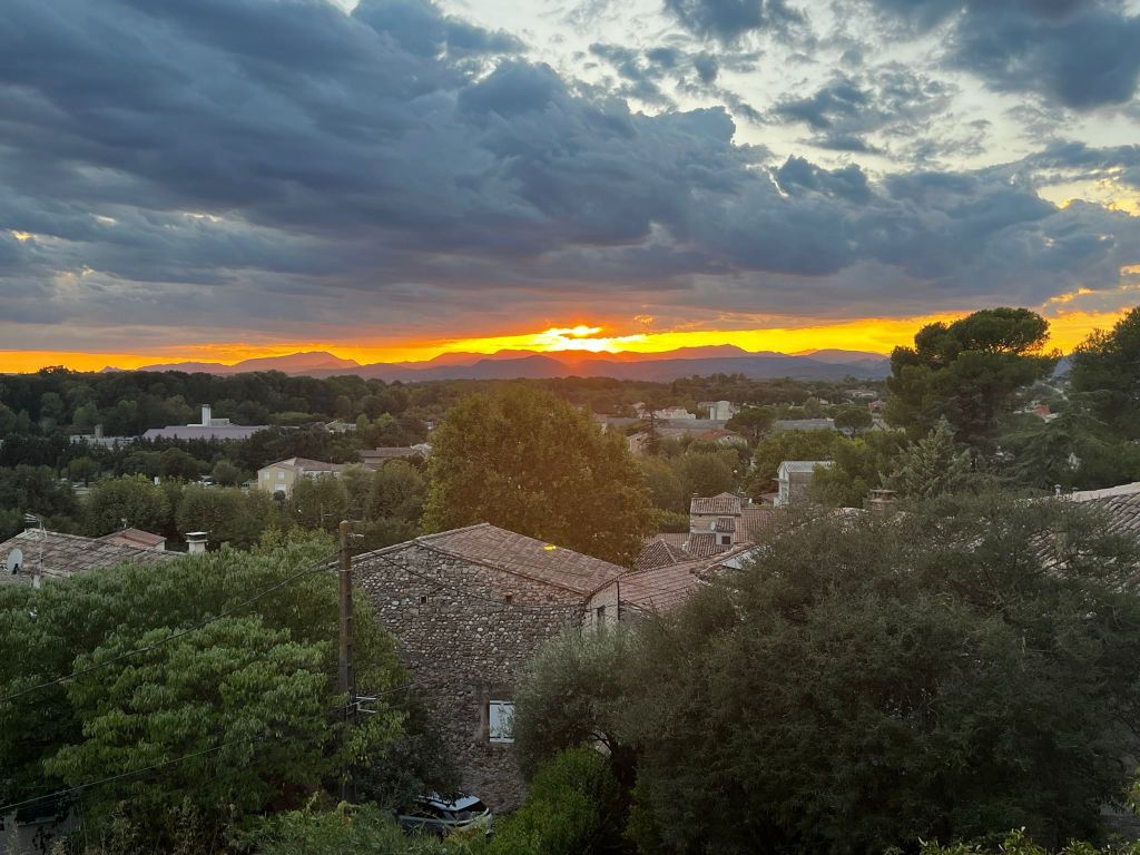 - grande terrasse privative vue sur les Cévennes et accès piscine